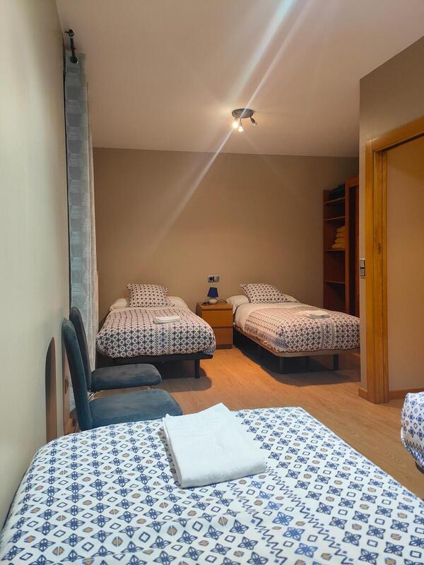 Dos baños con ducha, salón de gran amplitud con dos sofá cama, TV Plasma de 32", zona wifi y dos grandes balcones que le dan luminosidad a la vez que unas excelentes vistas del Pirineo Navarro.